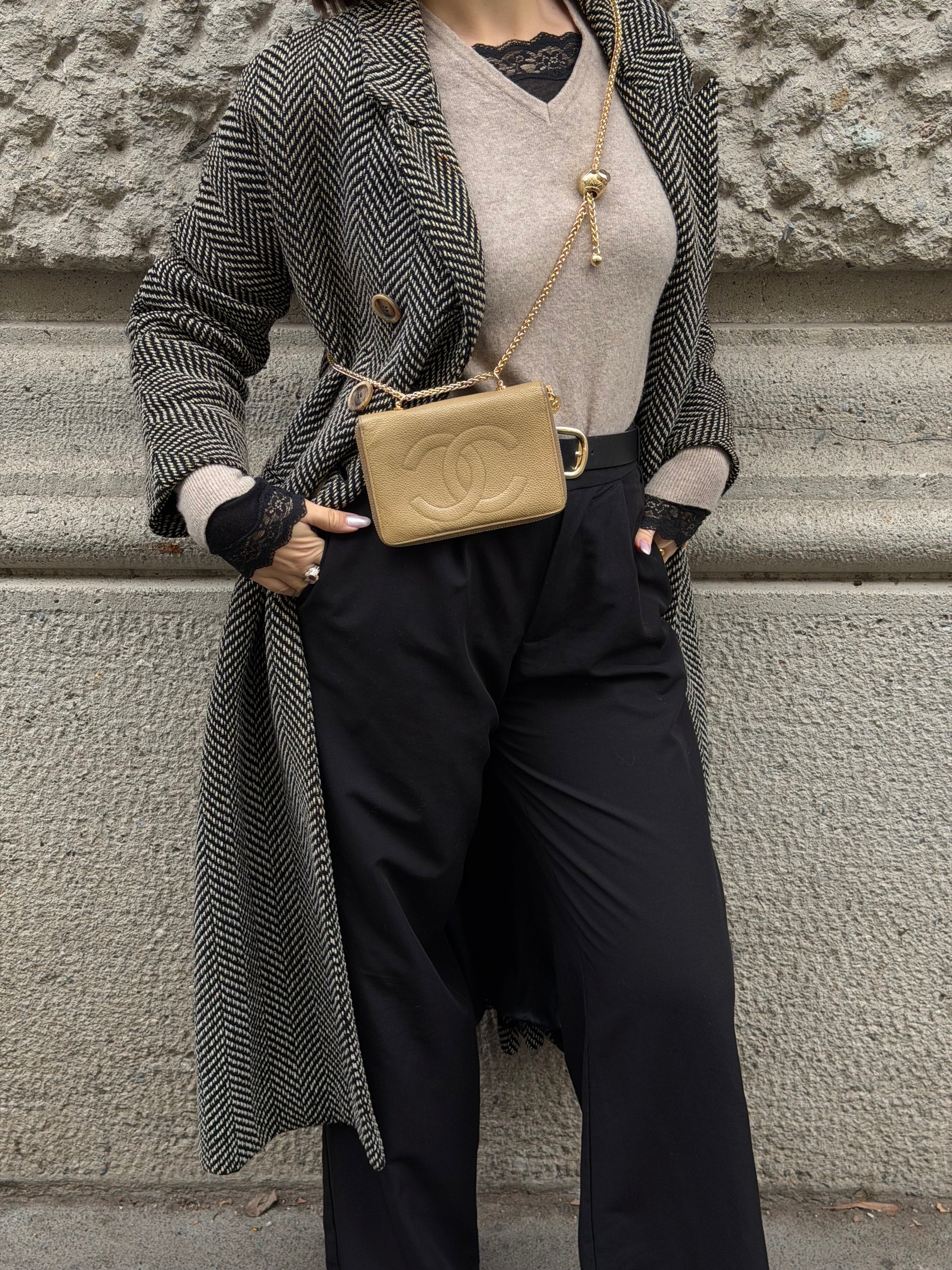 Portafoglio Chanel Re-Worked Light Beige Vintage medio con cerniera e catena