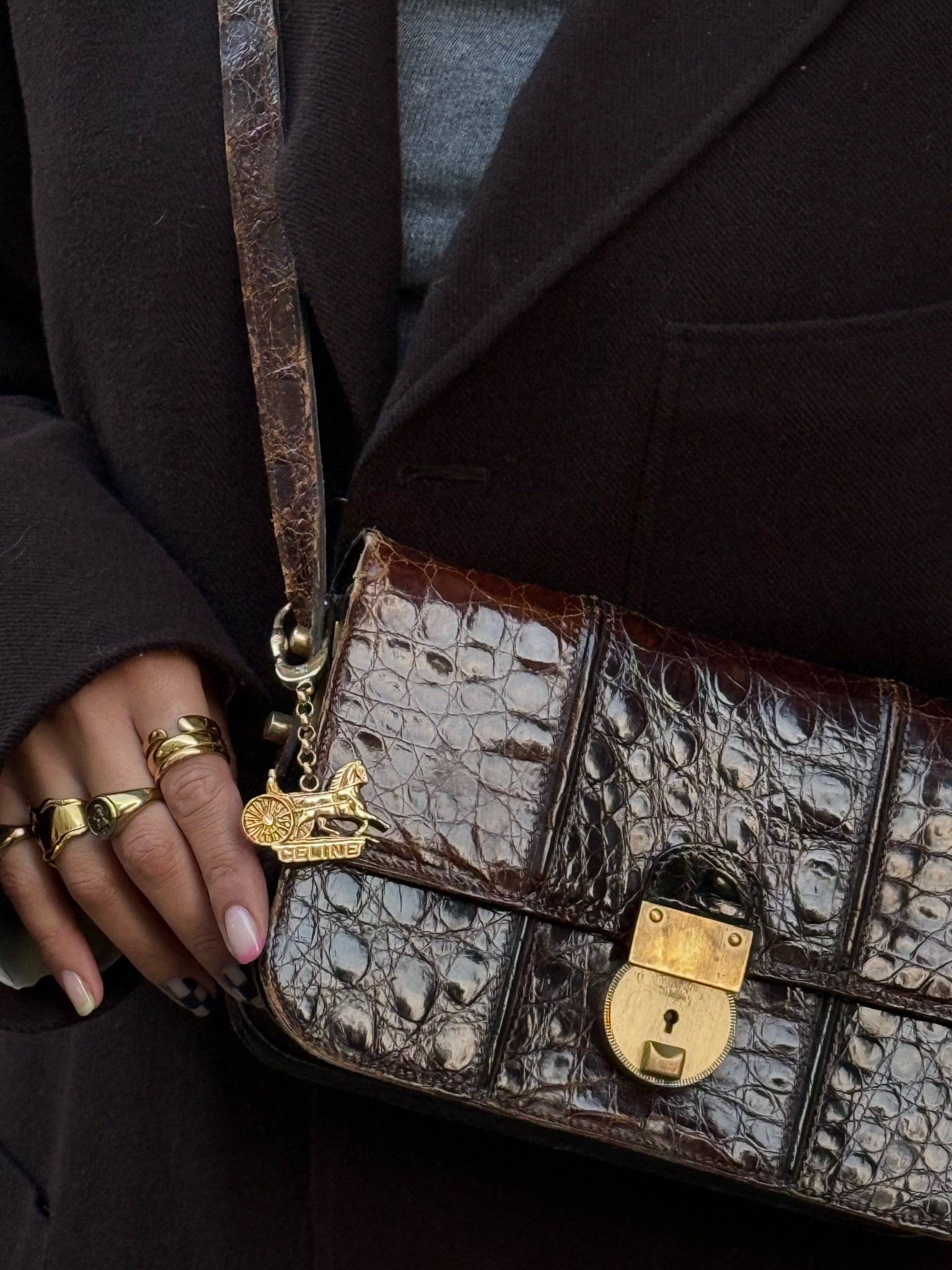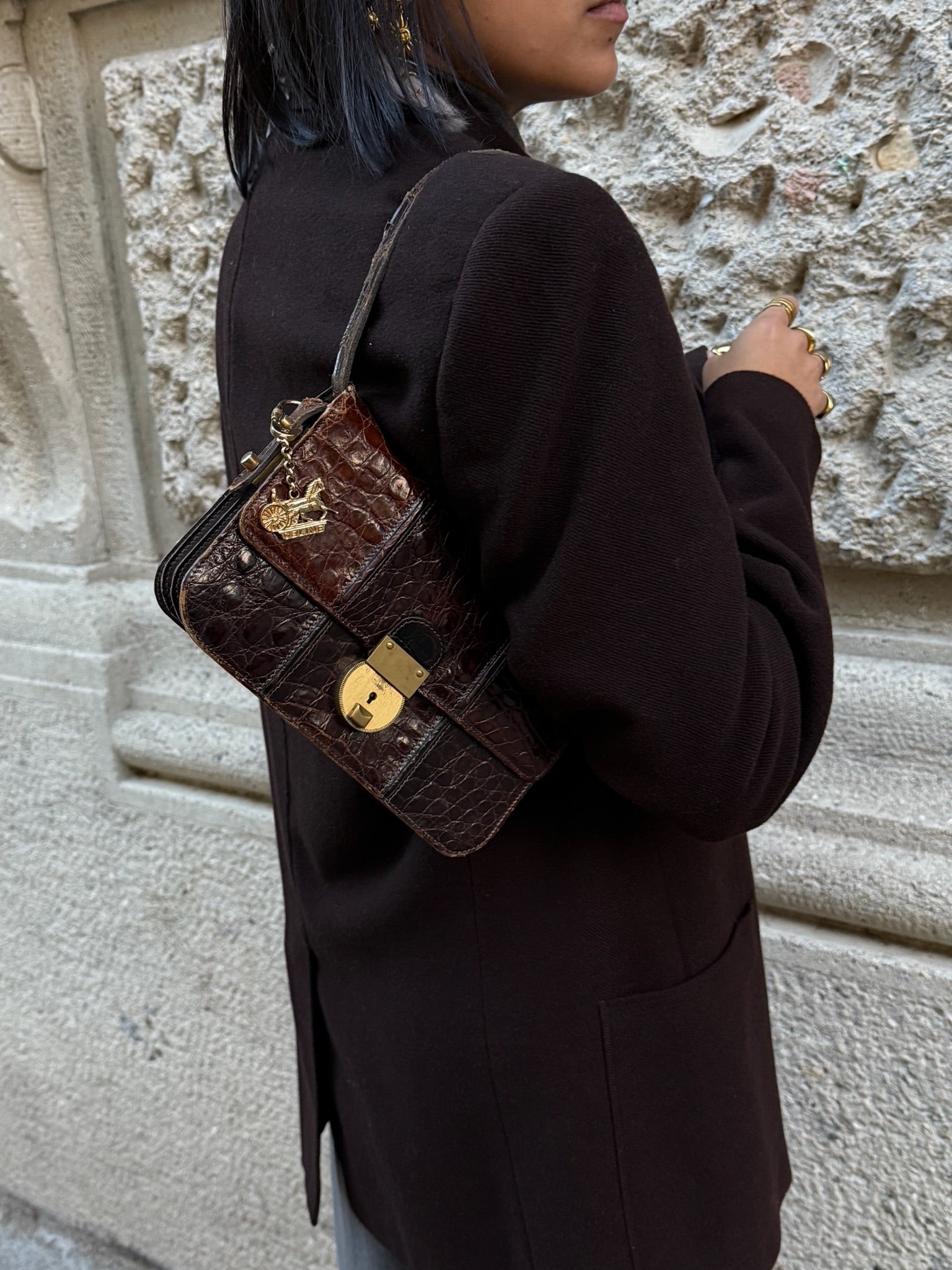 Cèline Vintage Crocodile Brown Leather Crossbody Bag