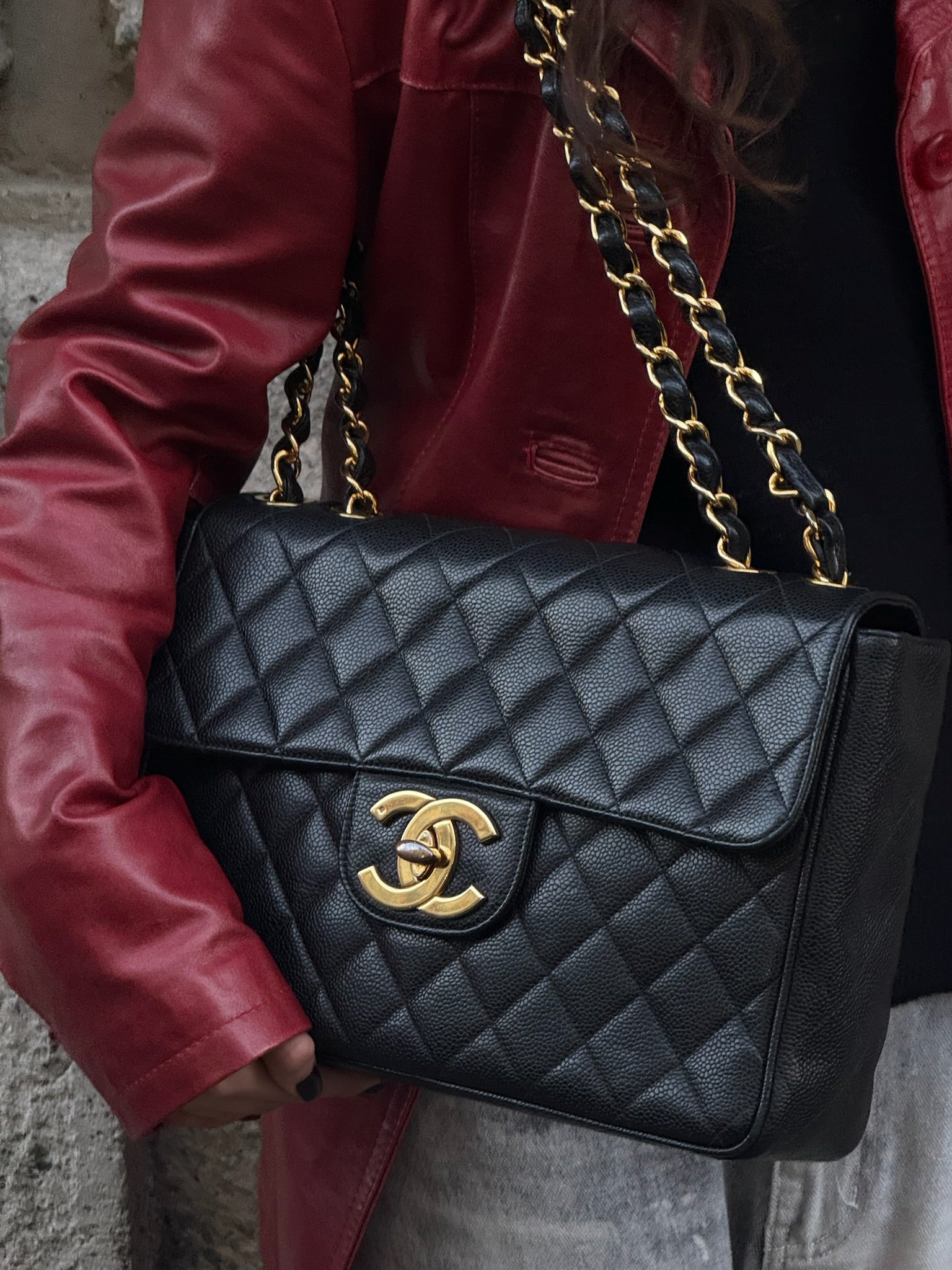 Chanel Vintage Jumbo Maxi Logo Caviar Leather