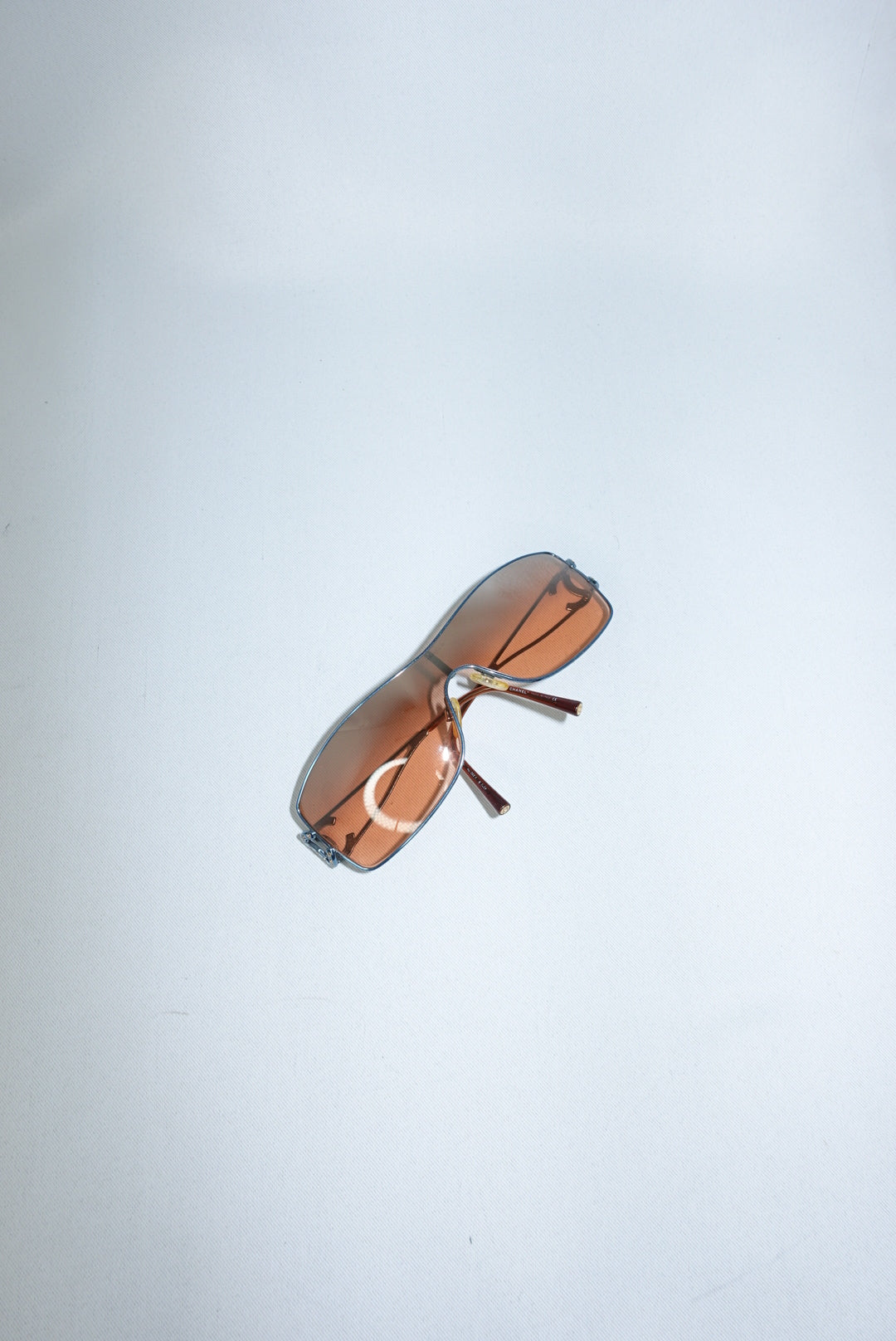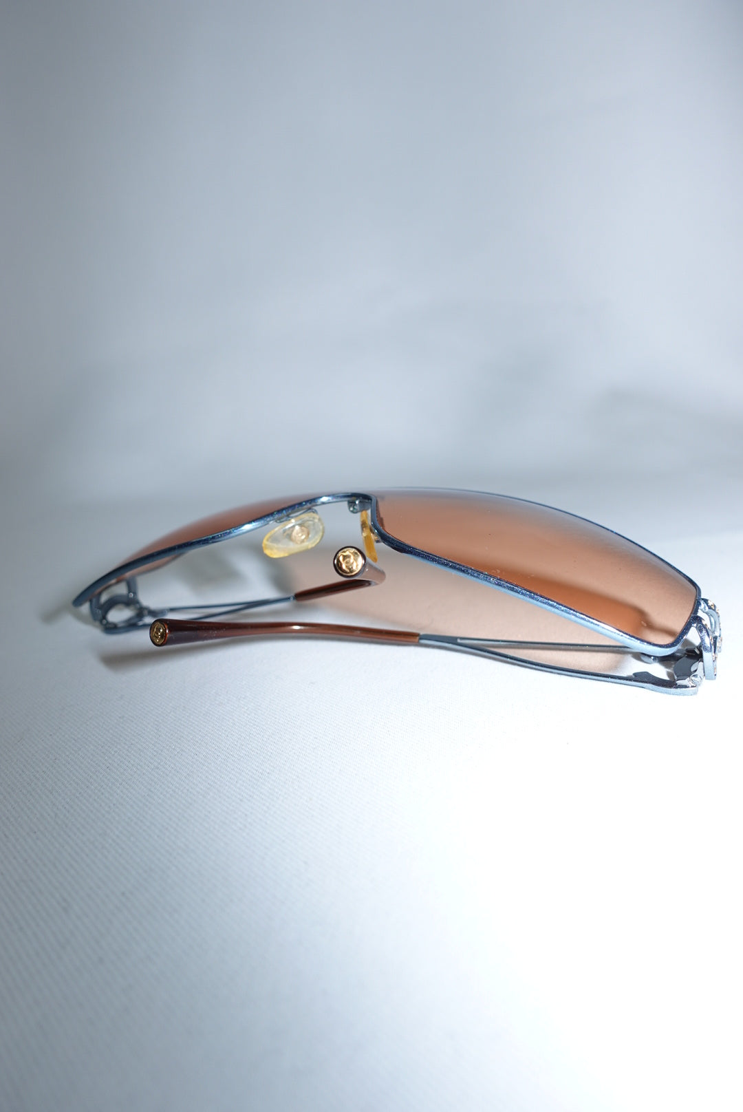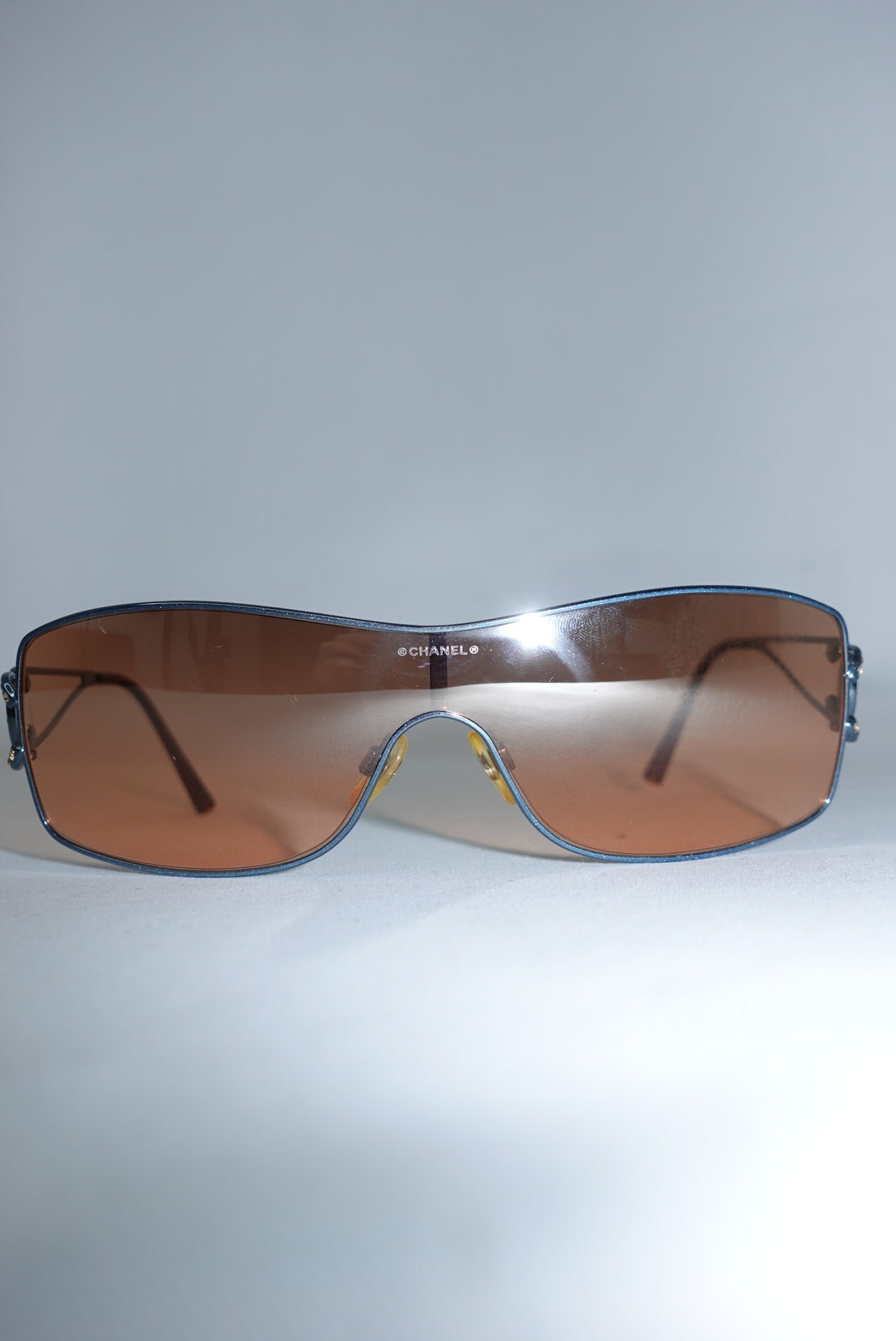 Vintage Chanel Y2K sunglasses featuring a blue frame with crystal CC logo, an iconic statement of early 2000s luxury.