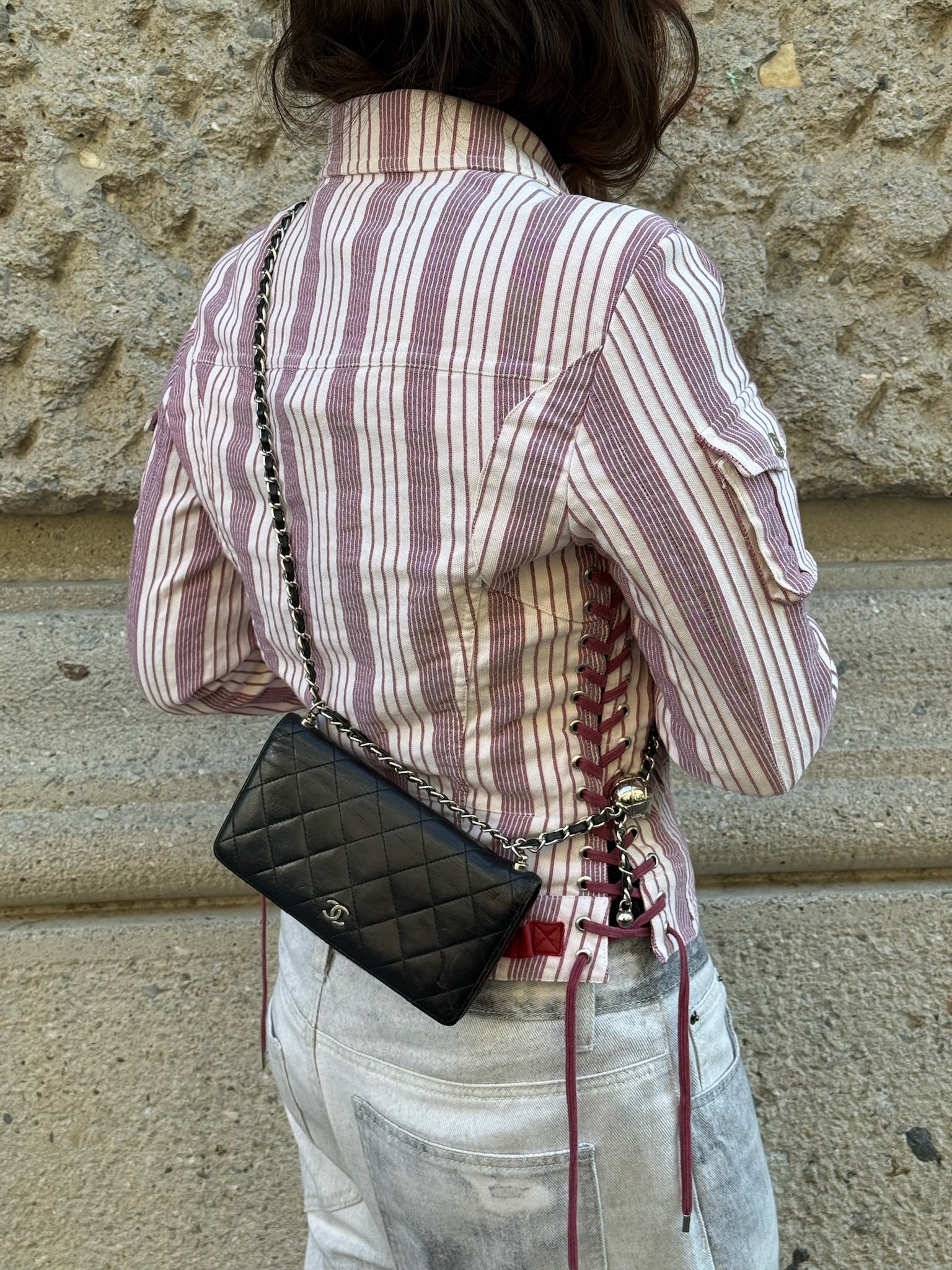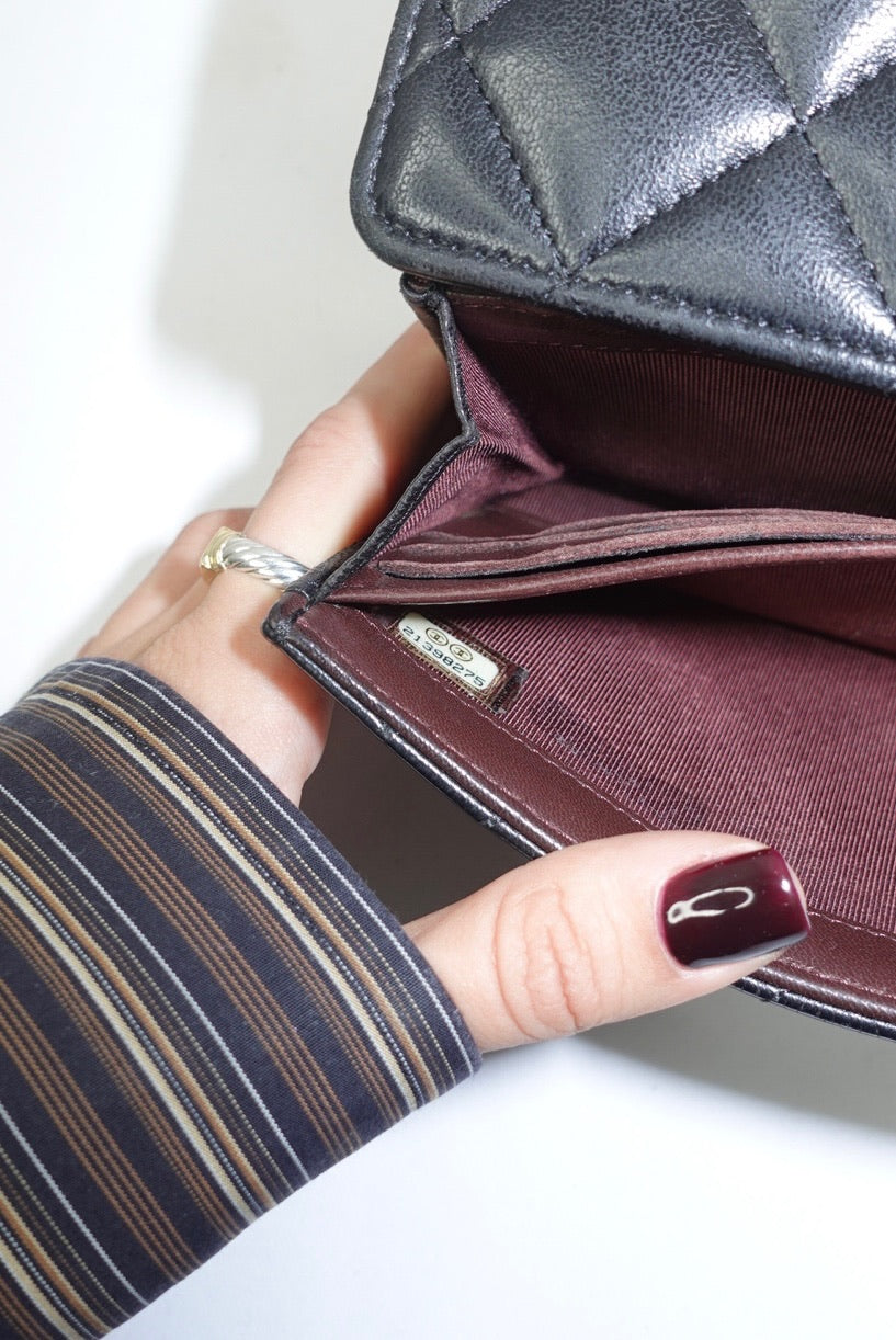 Chanel Re-Worked Black Timeless Bifold Vintage Wallet with Chain