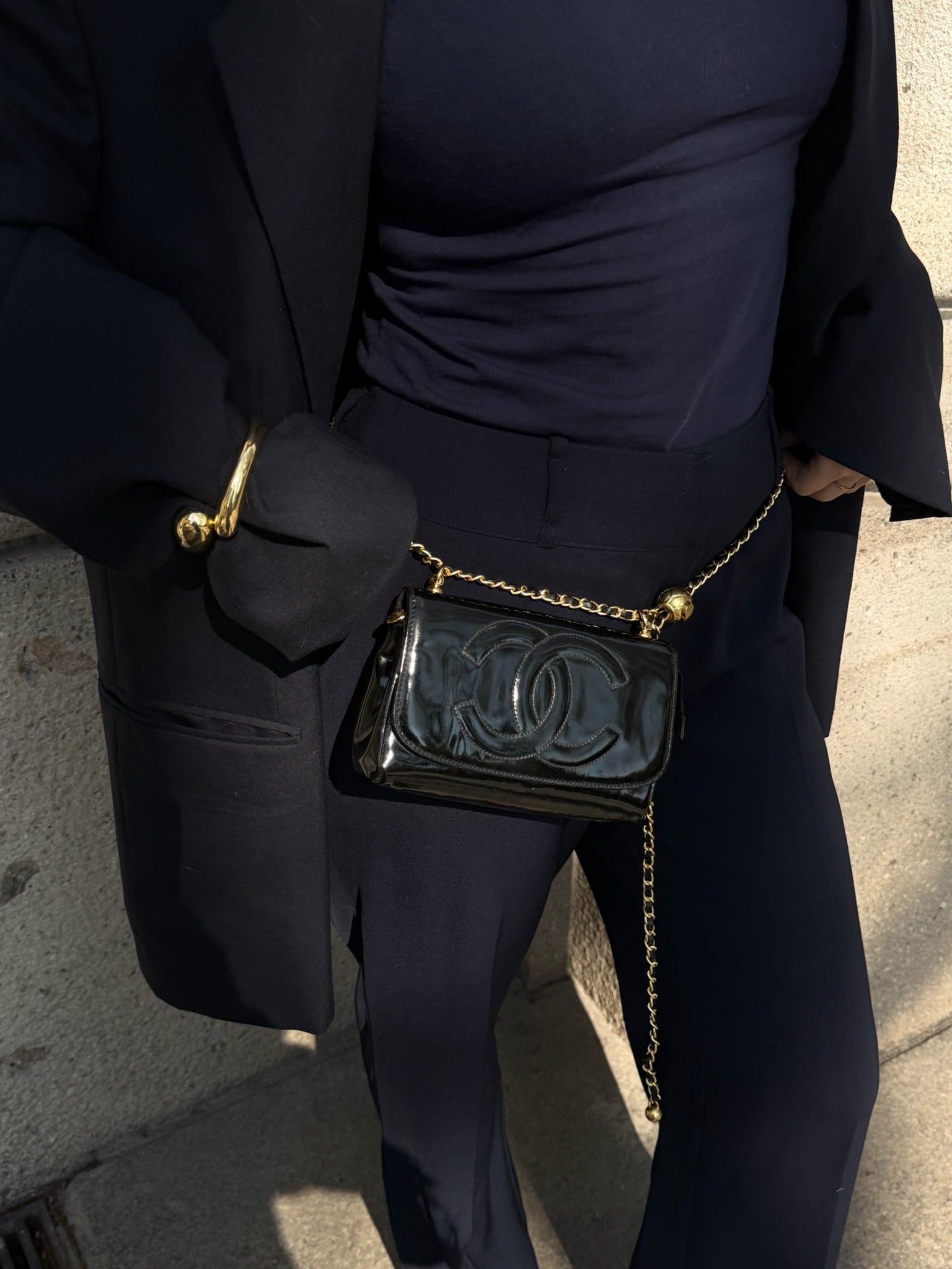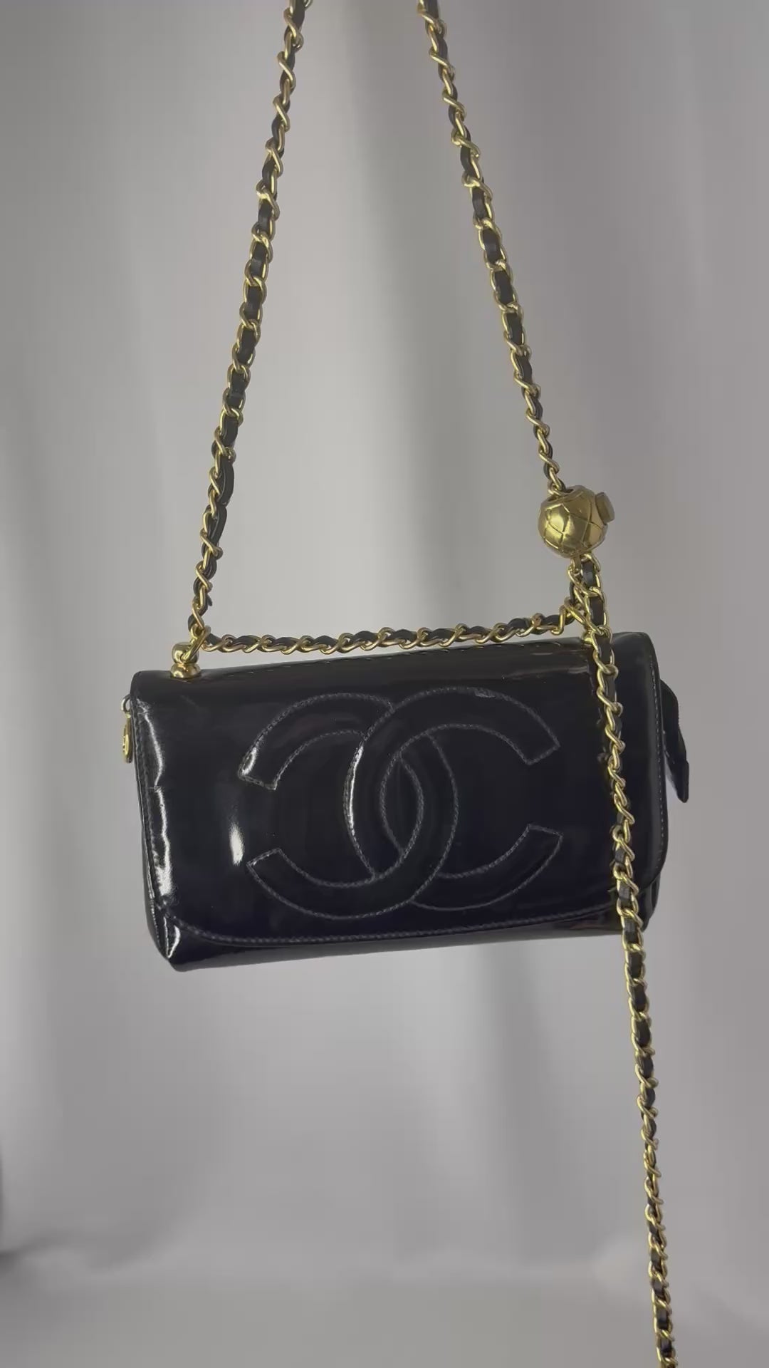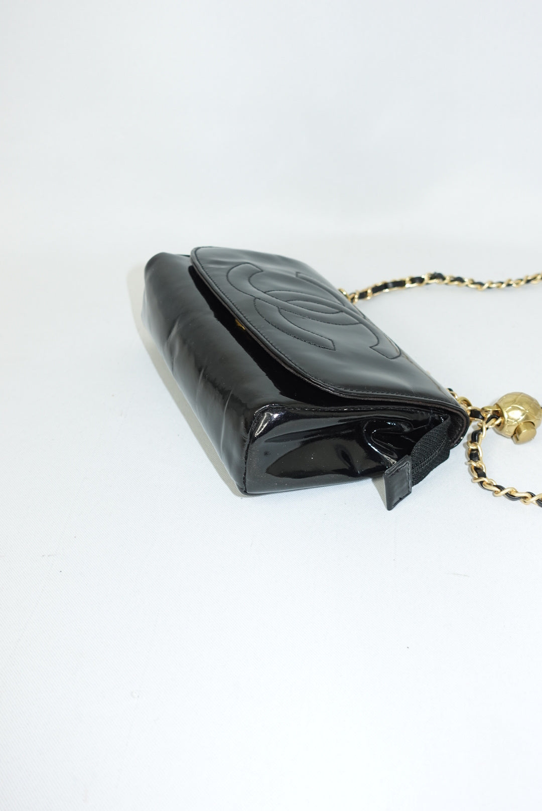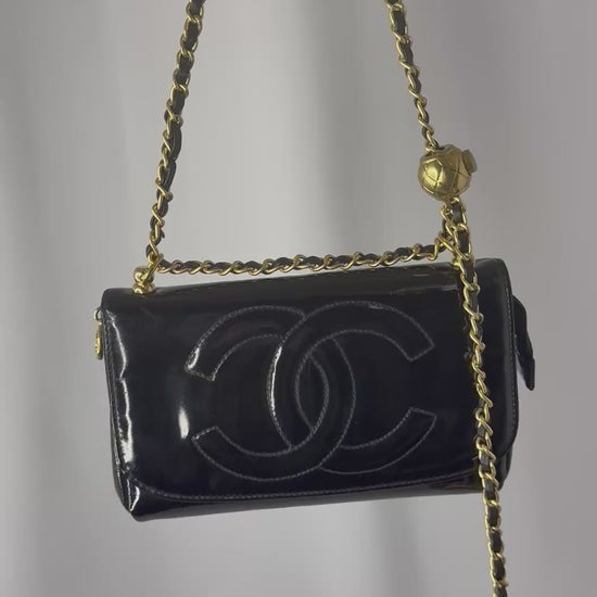 Chanel Re-Worked CC Flap Vintage Black Patent Leather Wallet w/ Chain