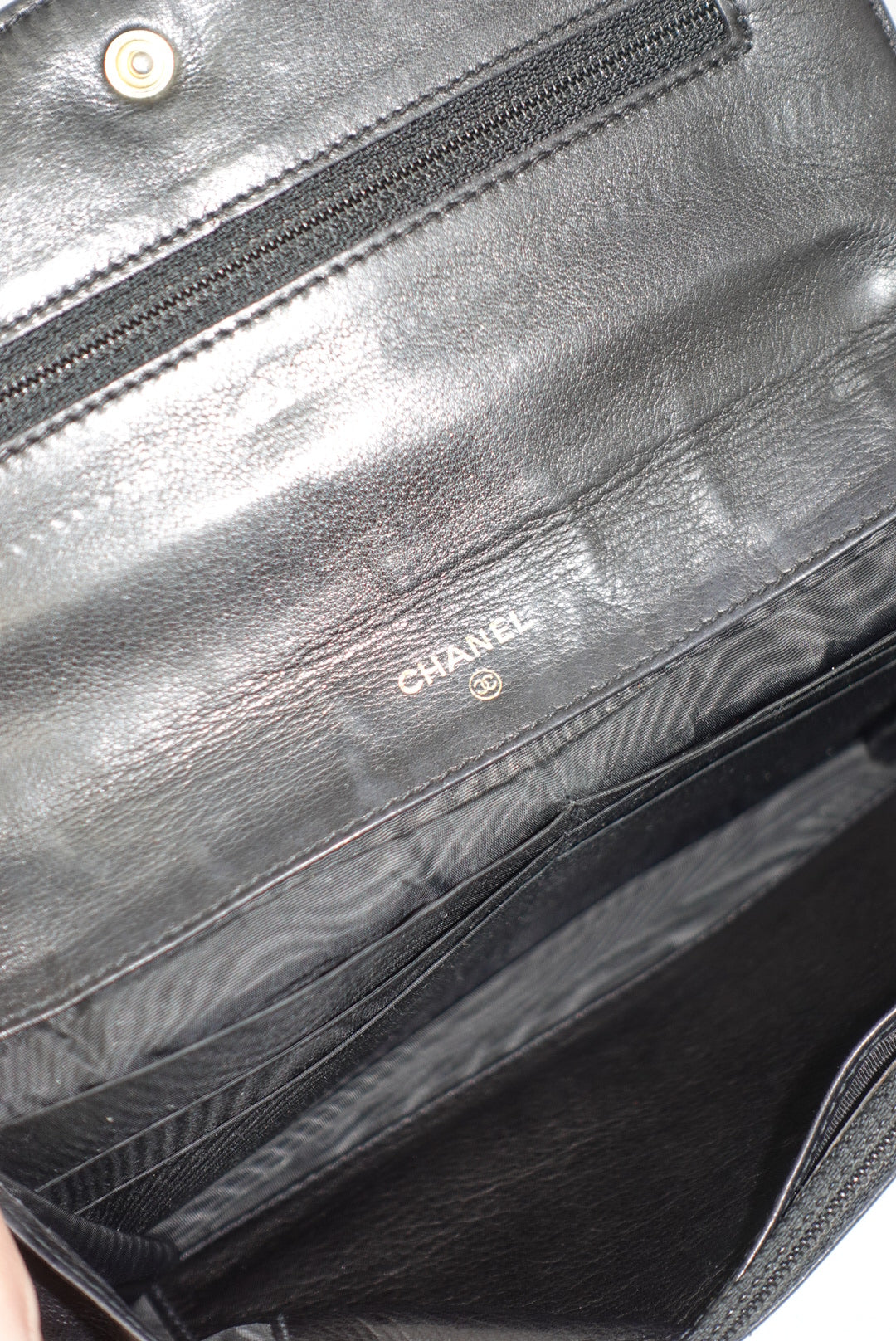 Chanel Re-Worked Vintage Long Flap Wallet With Chain Black Caviar CC logo