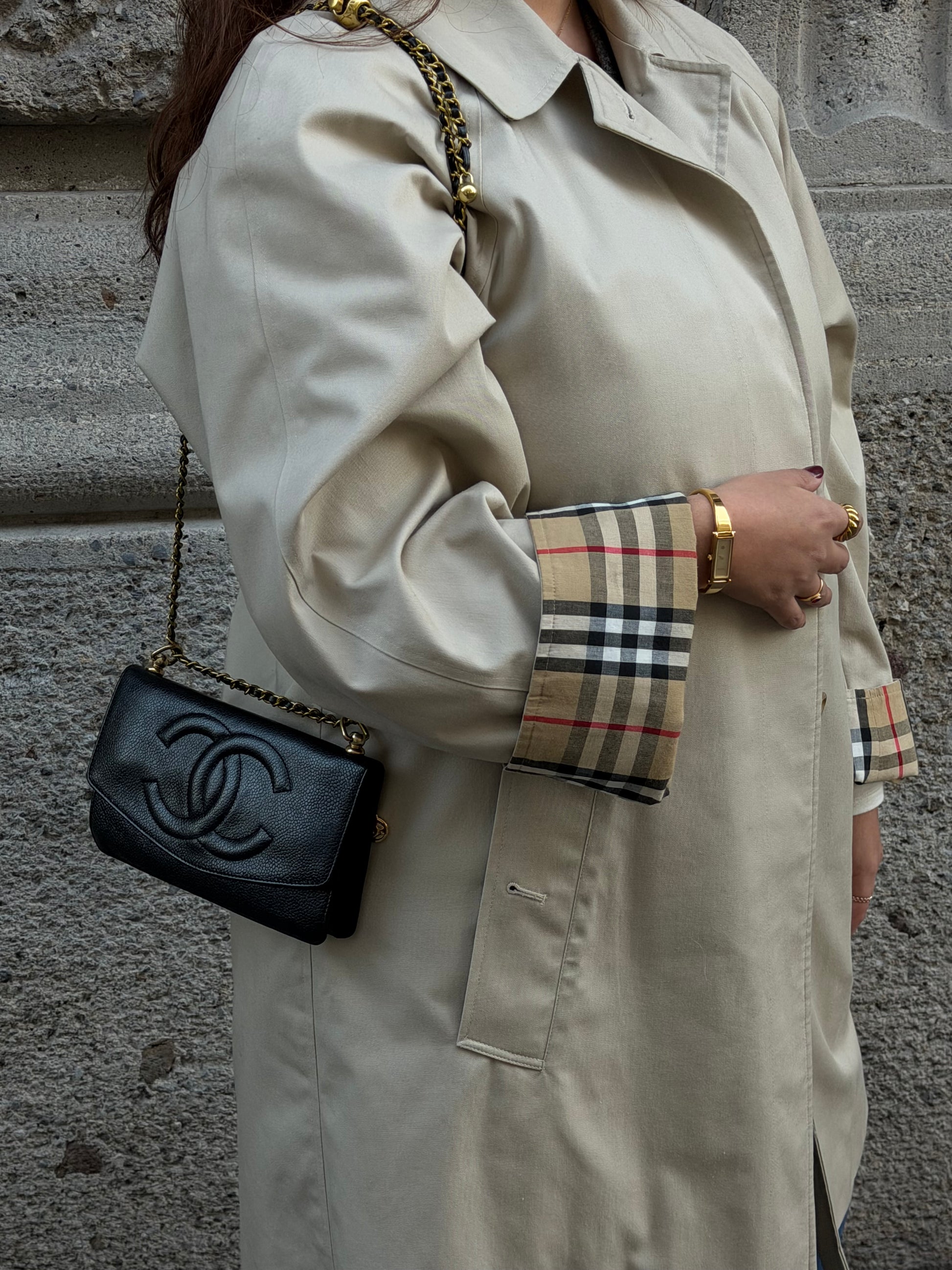 Chanel Re-Worked Vintage Flap Wallet With Chain Black Caviar CC logo