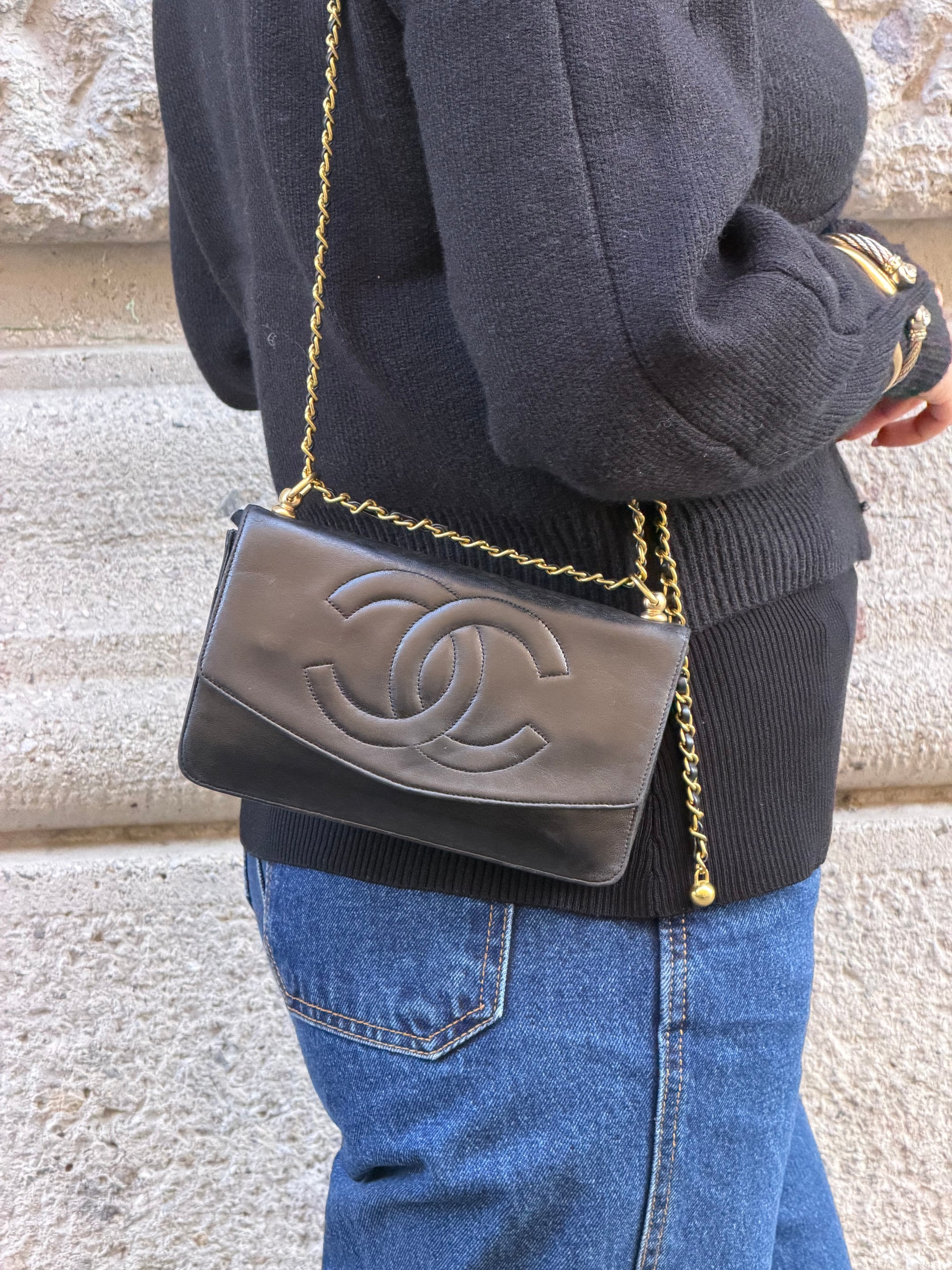 Chanel Re-Worked Vintage Flap Wallet With Chain Black Lambskin CC logo