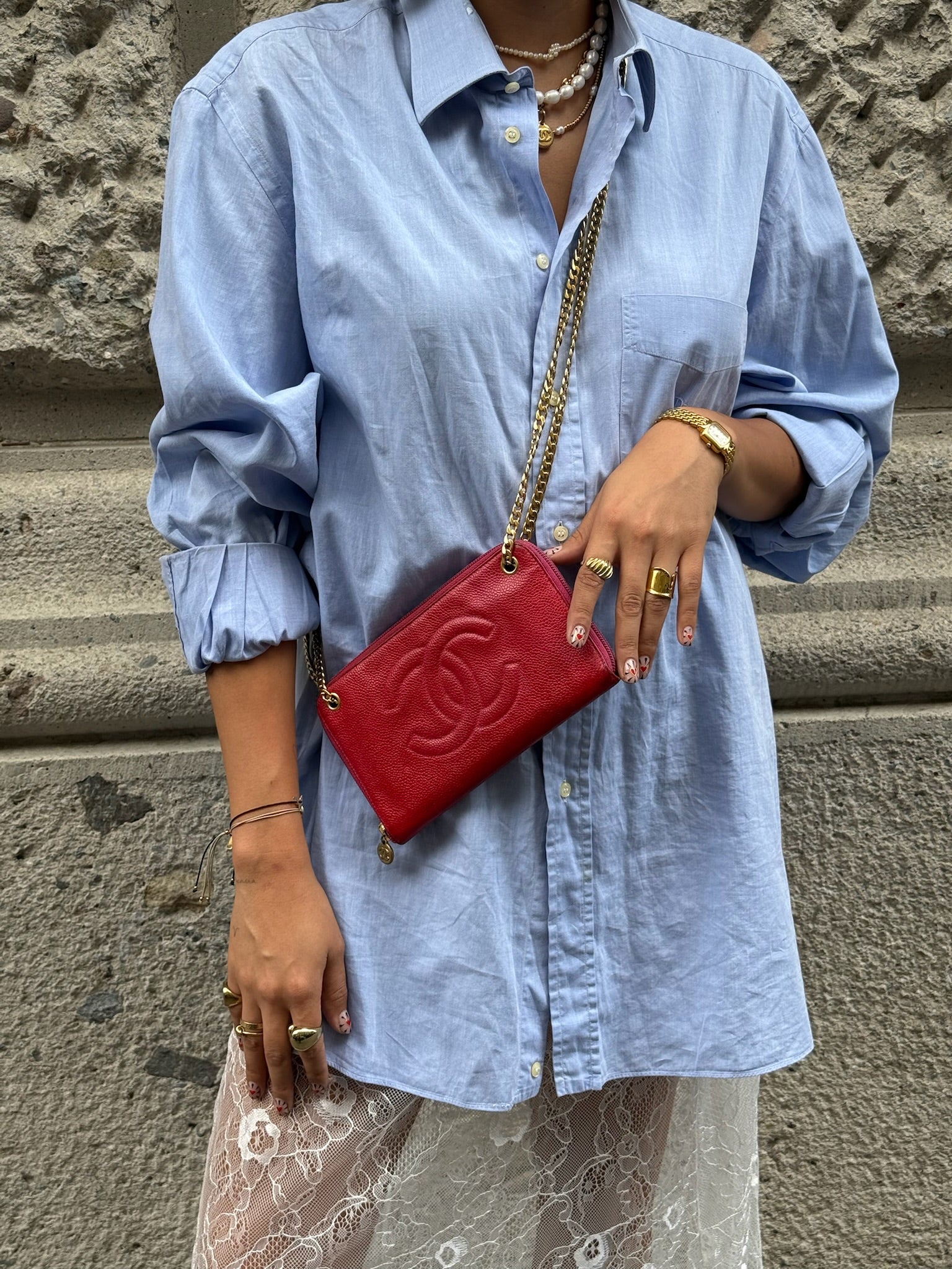 Chanel Re-Worked Zip Vintage W.O.C CC logo Hot Pink