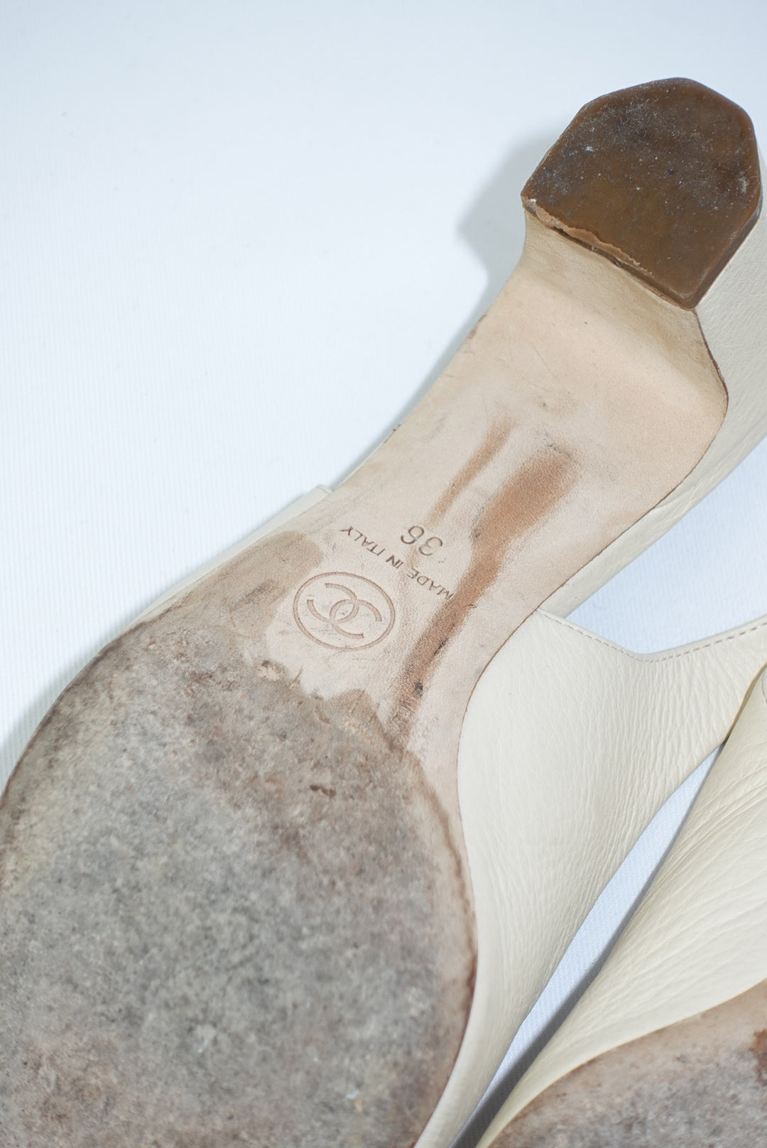 Chanel Slingback Vintage Black and White Ballerina Heels 36