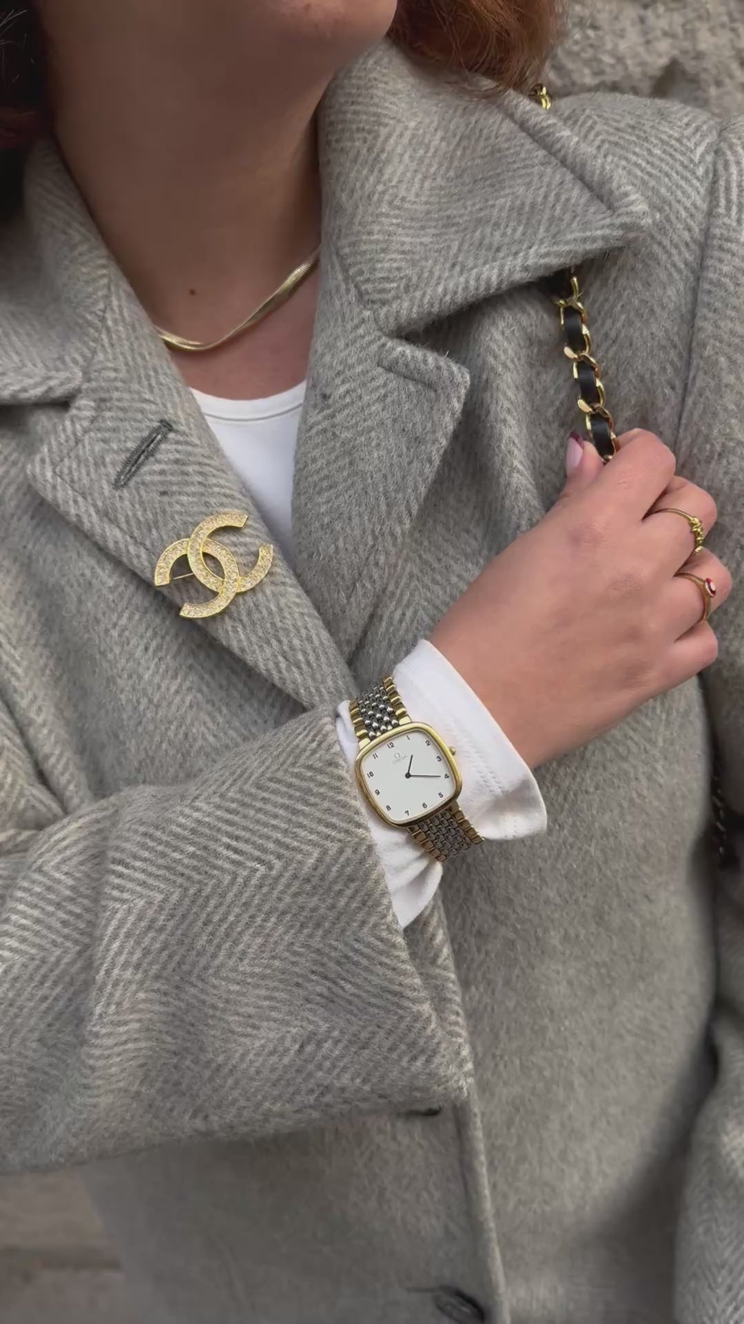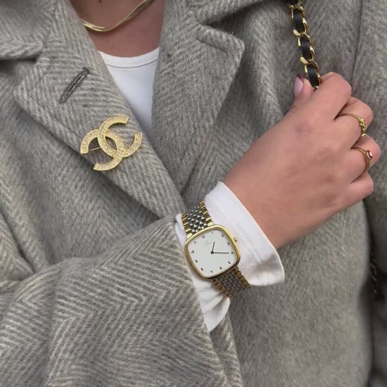 Chanel Vintage Crystal Gold toned Logo CC Pin