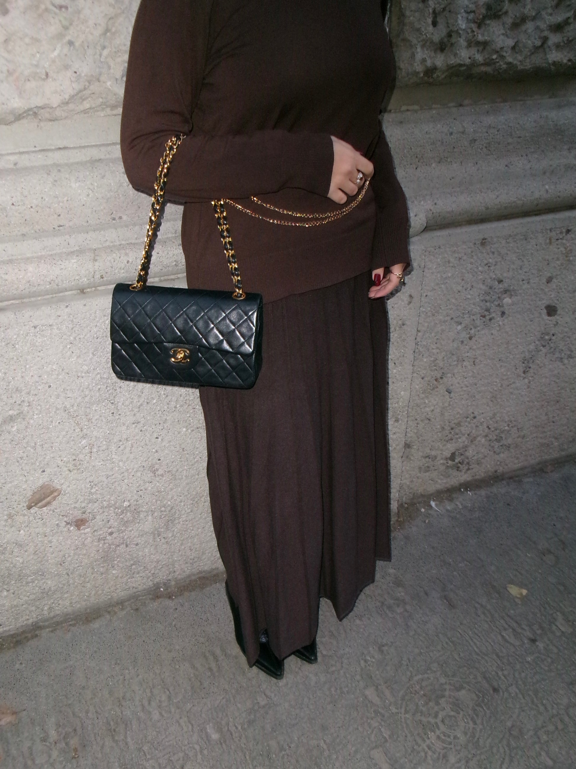 In the 1920s, Coco Chanel became tired of having to carry her handbags in her arms and decided to design a handbag that freed up her hands. Inspired by the straps found on soldiers' bags she added thin straps and introduced the resulting design to the market in 1929.