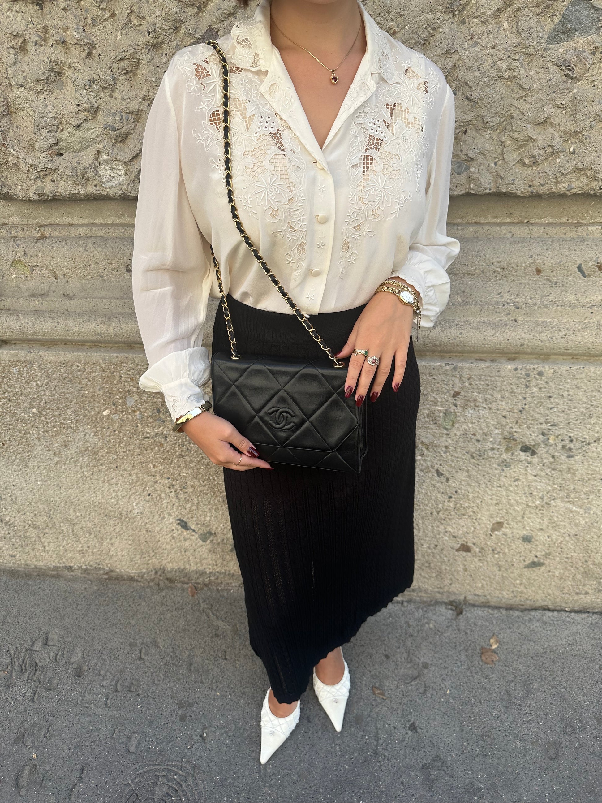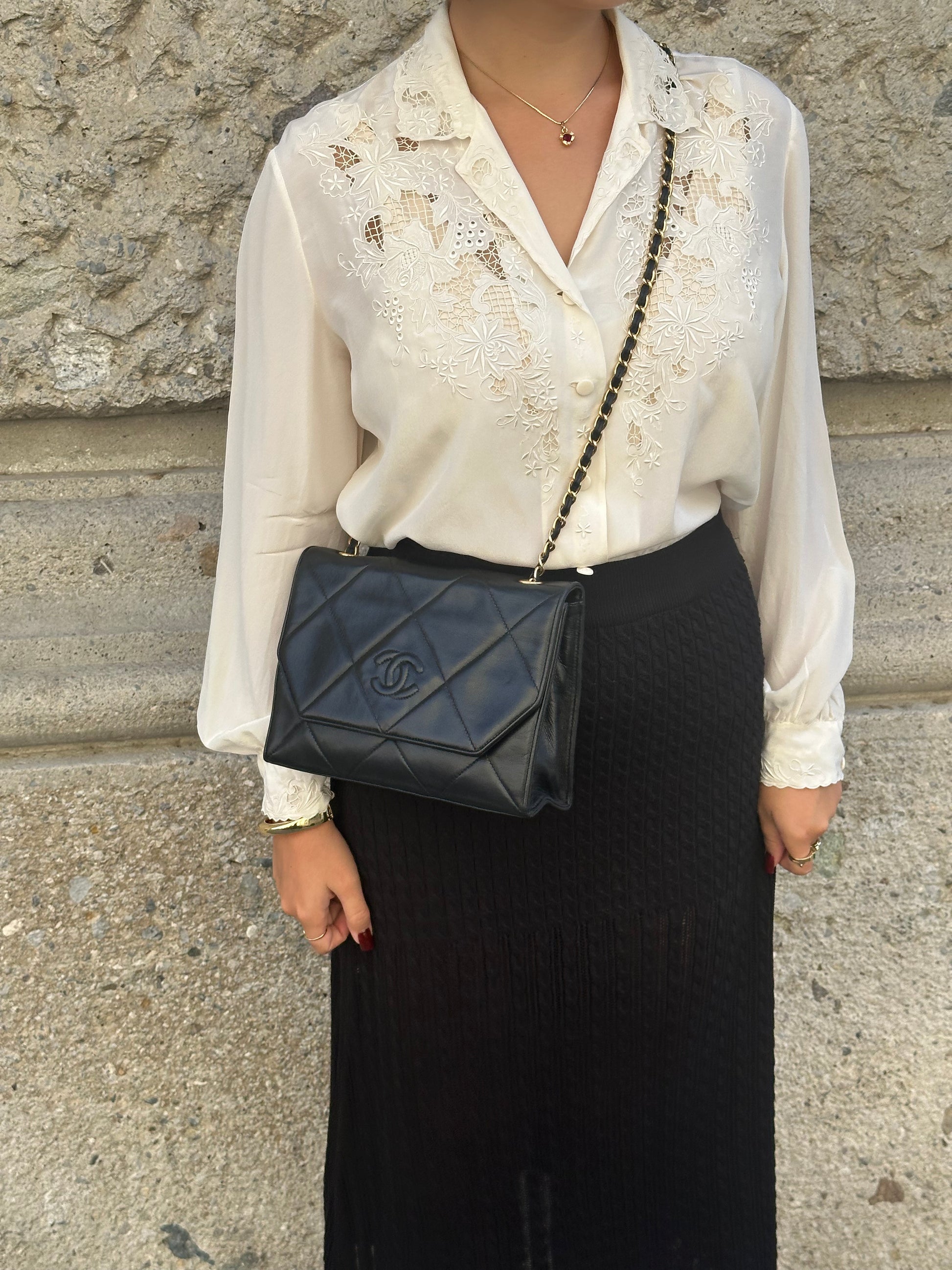Chanel Vintage Camera Bag CC Logo Black Lambskin