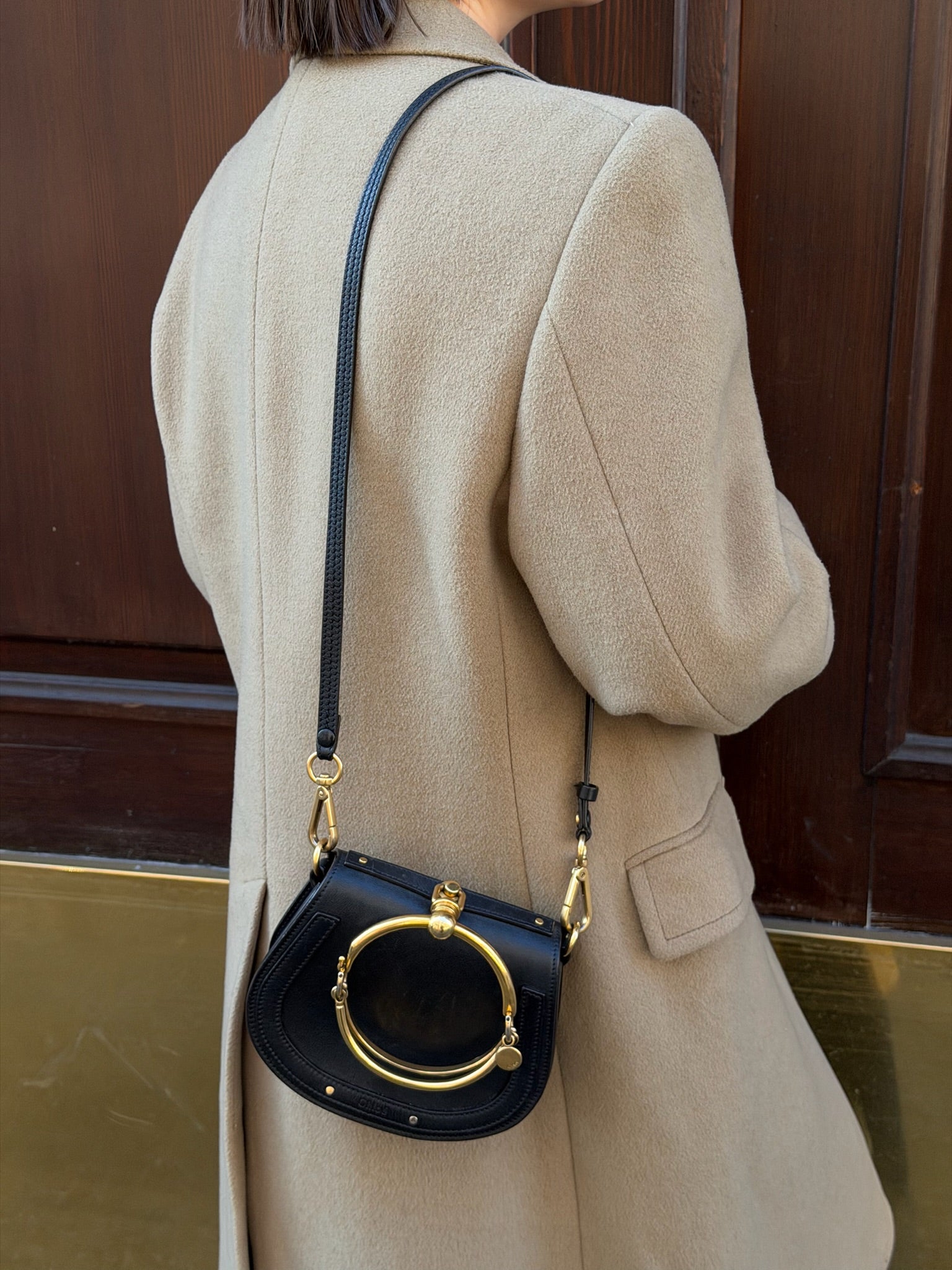 Black Leather and Gold-Toned Hardware