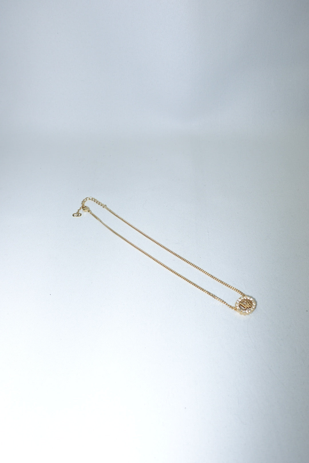 Christian Dior Gold Toned Vintage Necklace Round Crystals Logo