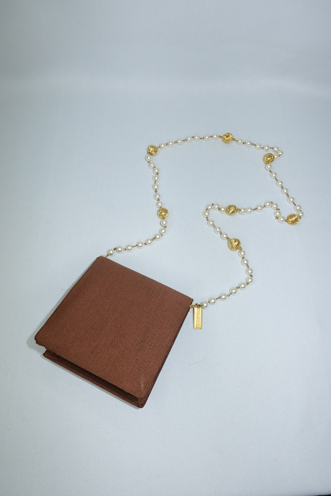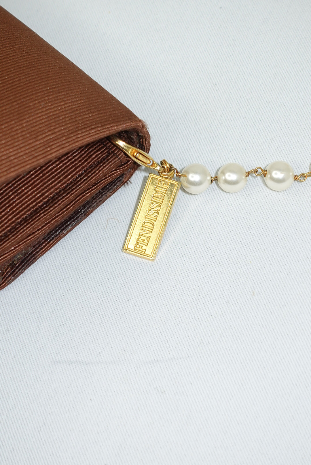 Fendissime Vintage Caramel and Gold Pearl Chain Bag