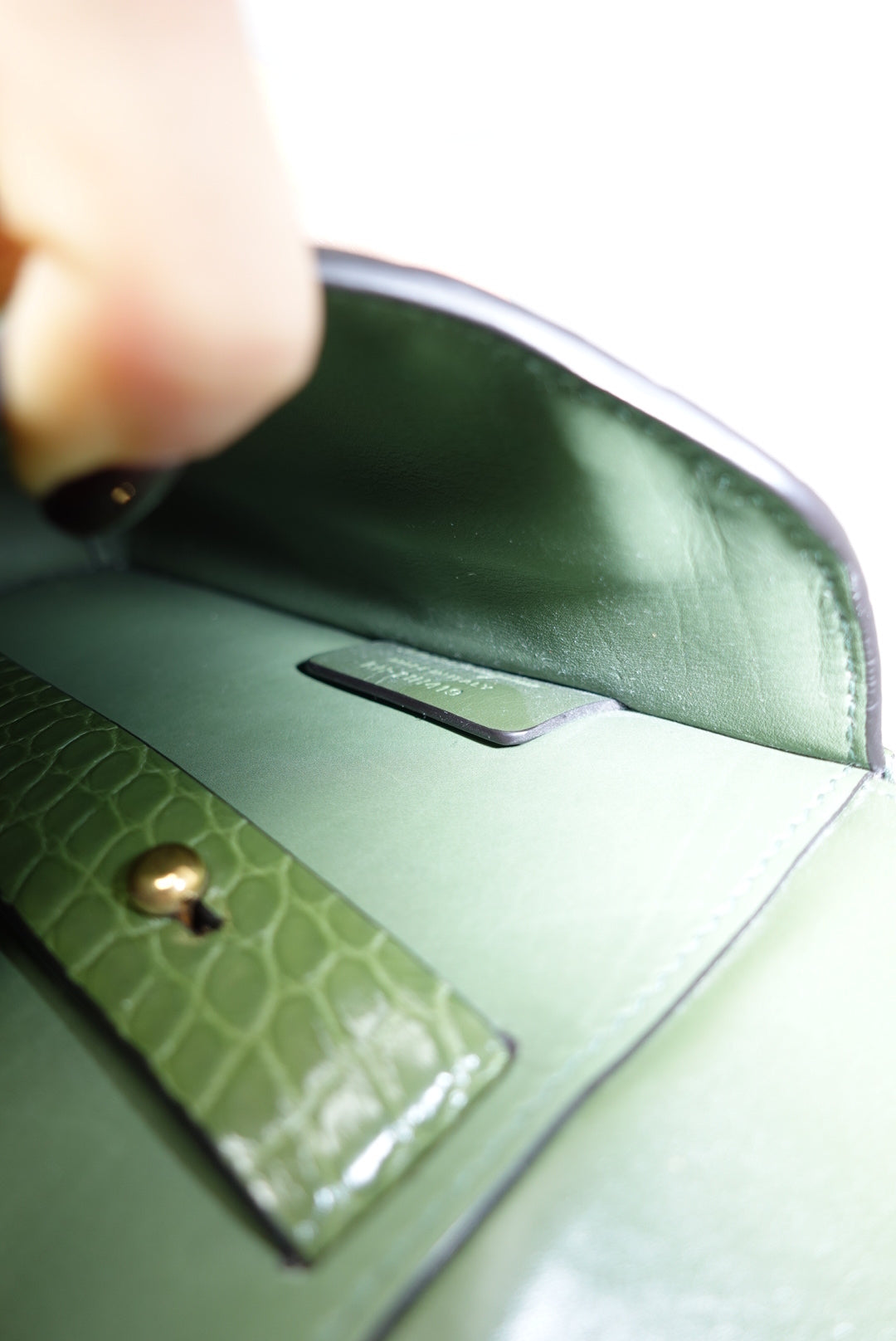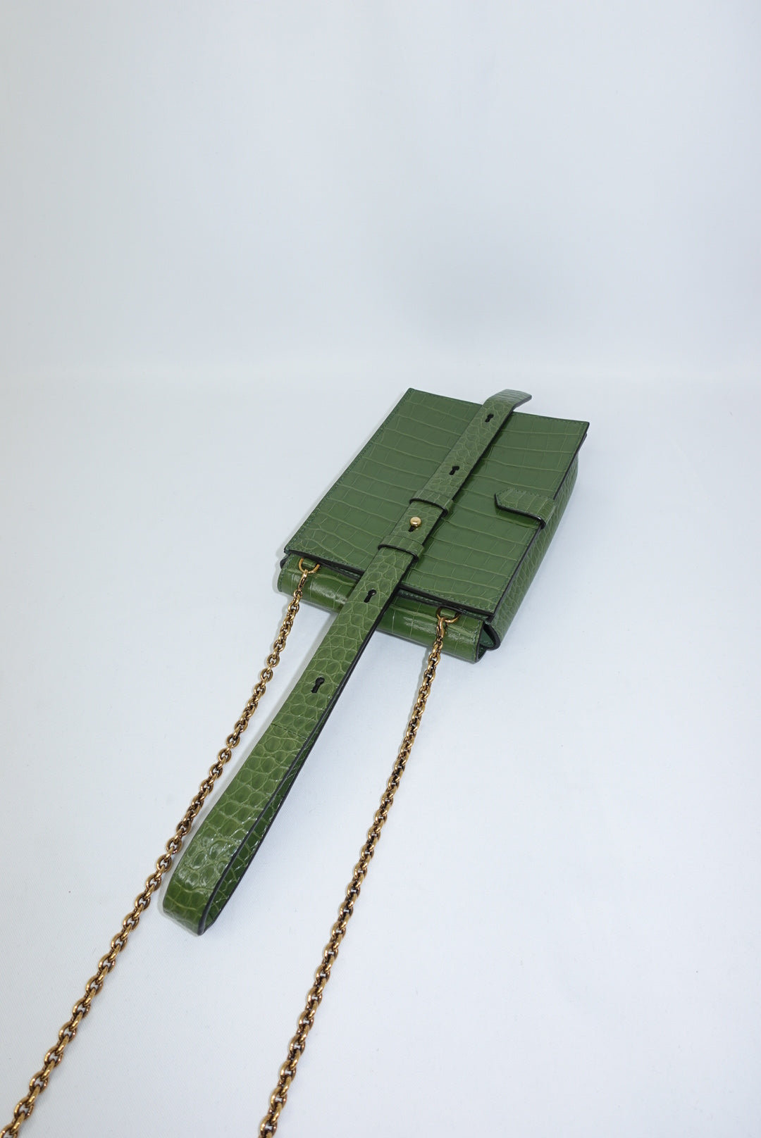 Ferragamo Croc Print Gancini Green Handbag W/ Chain