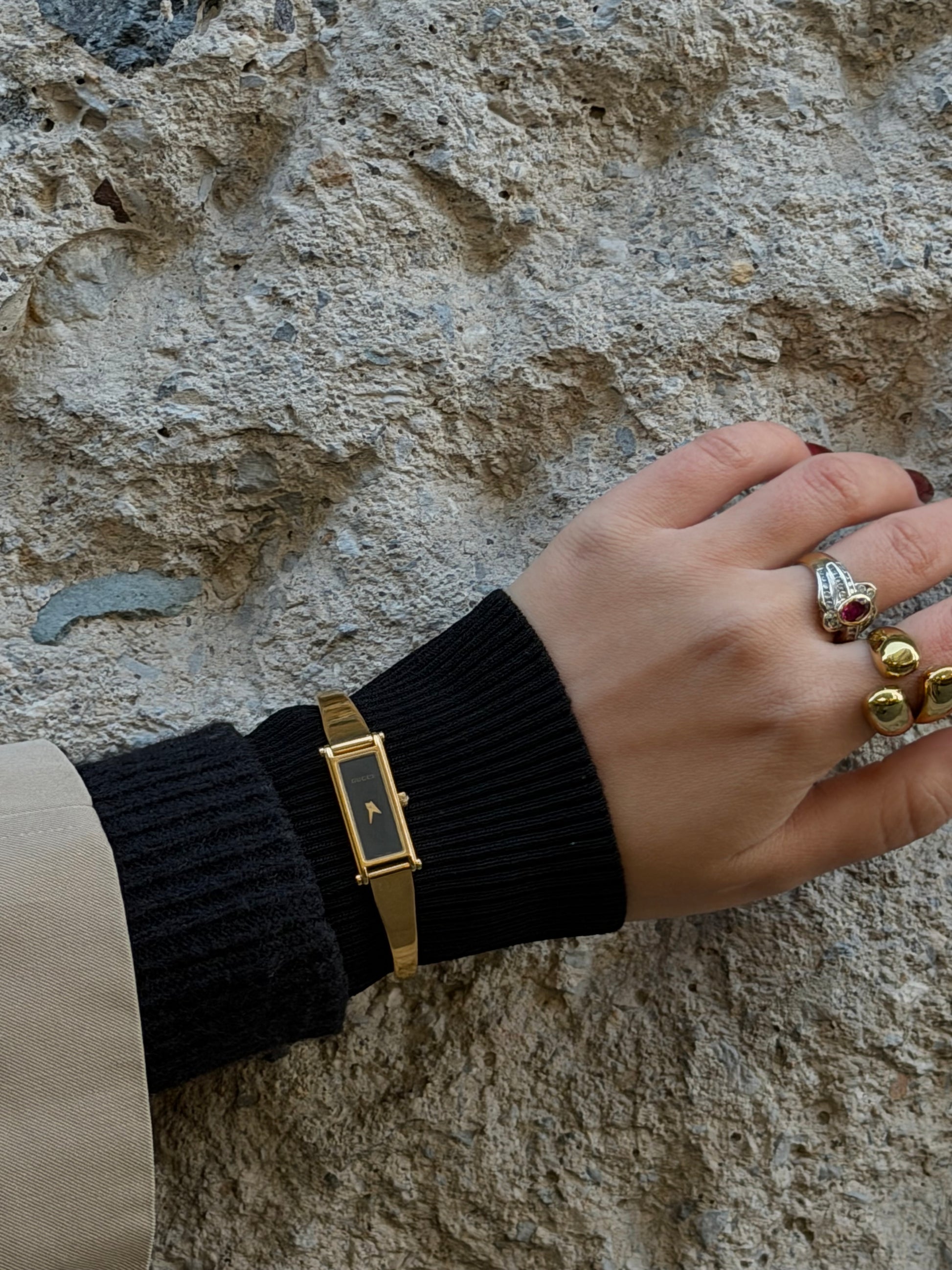 Gucci Vintage 1500L Horsebit Gold Watch With Black Dial