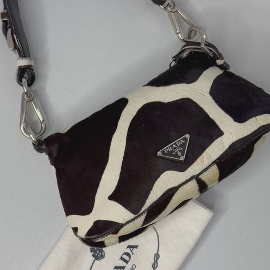 Prada 2000s Vintage Brown Pony Hair Shoulder Bag