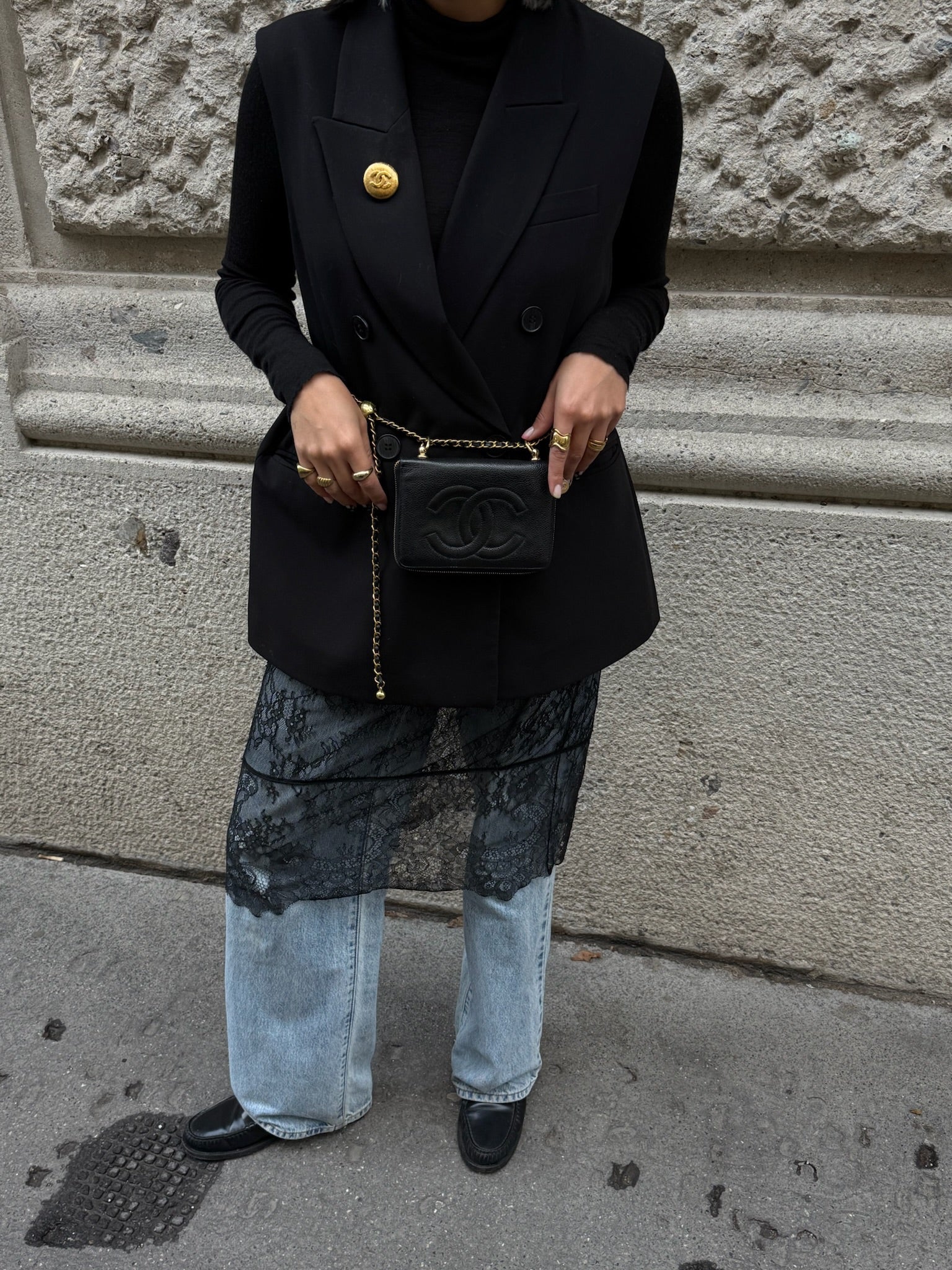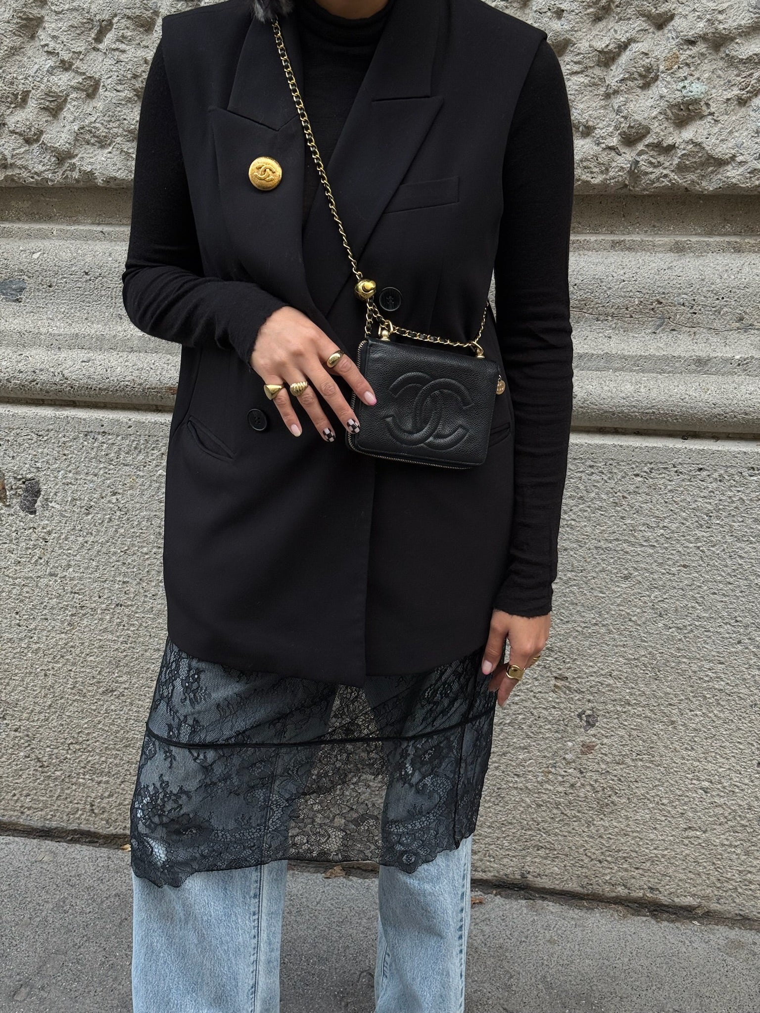 Re-Worked Chanel Black Zip CC Logo Small Vintage Wallet with Chain