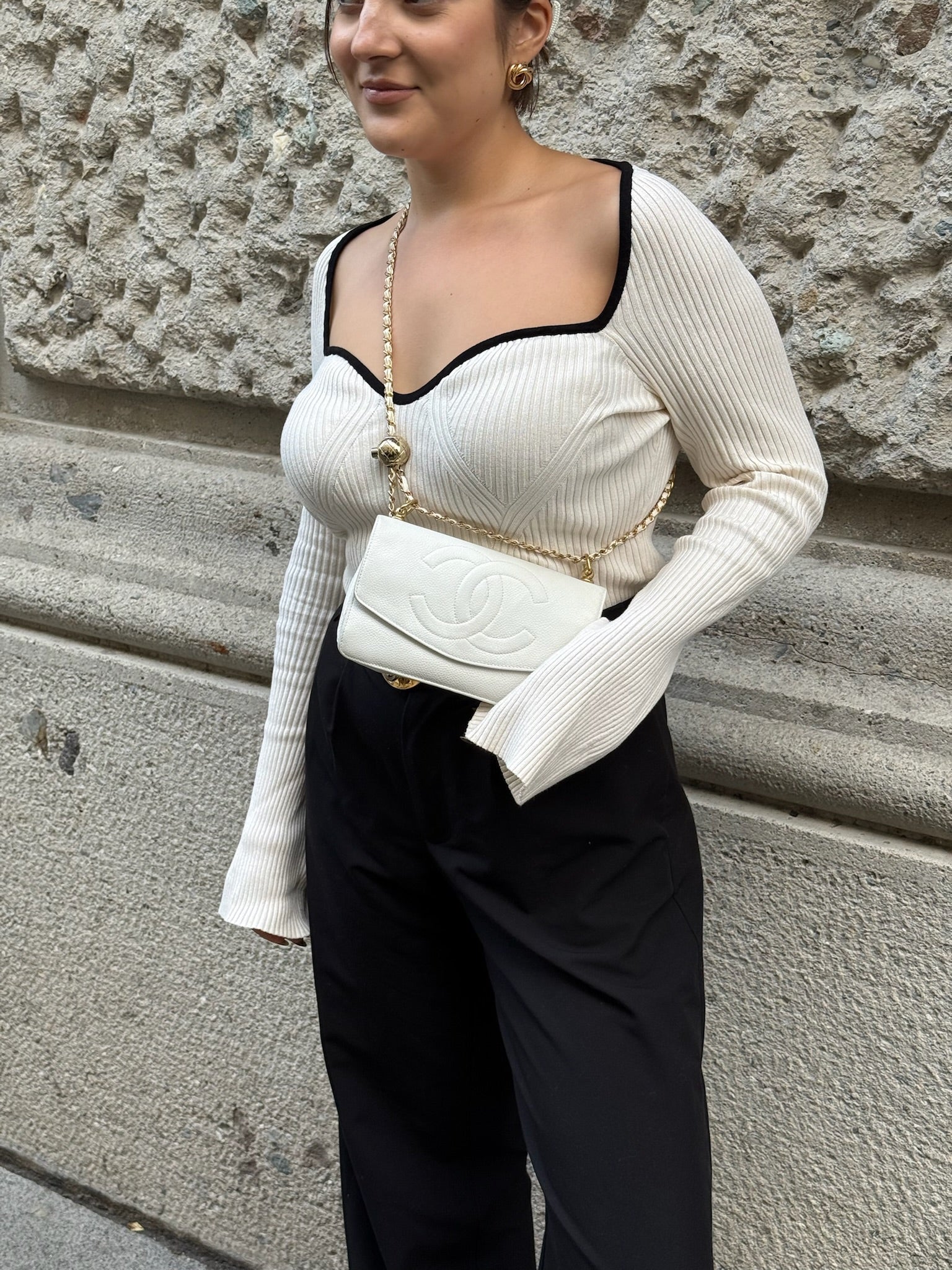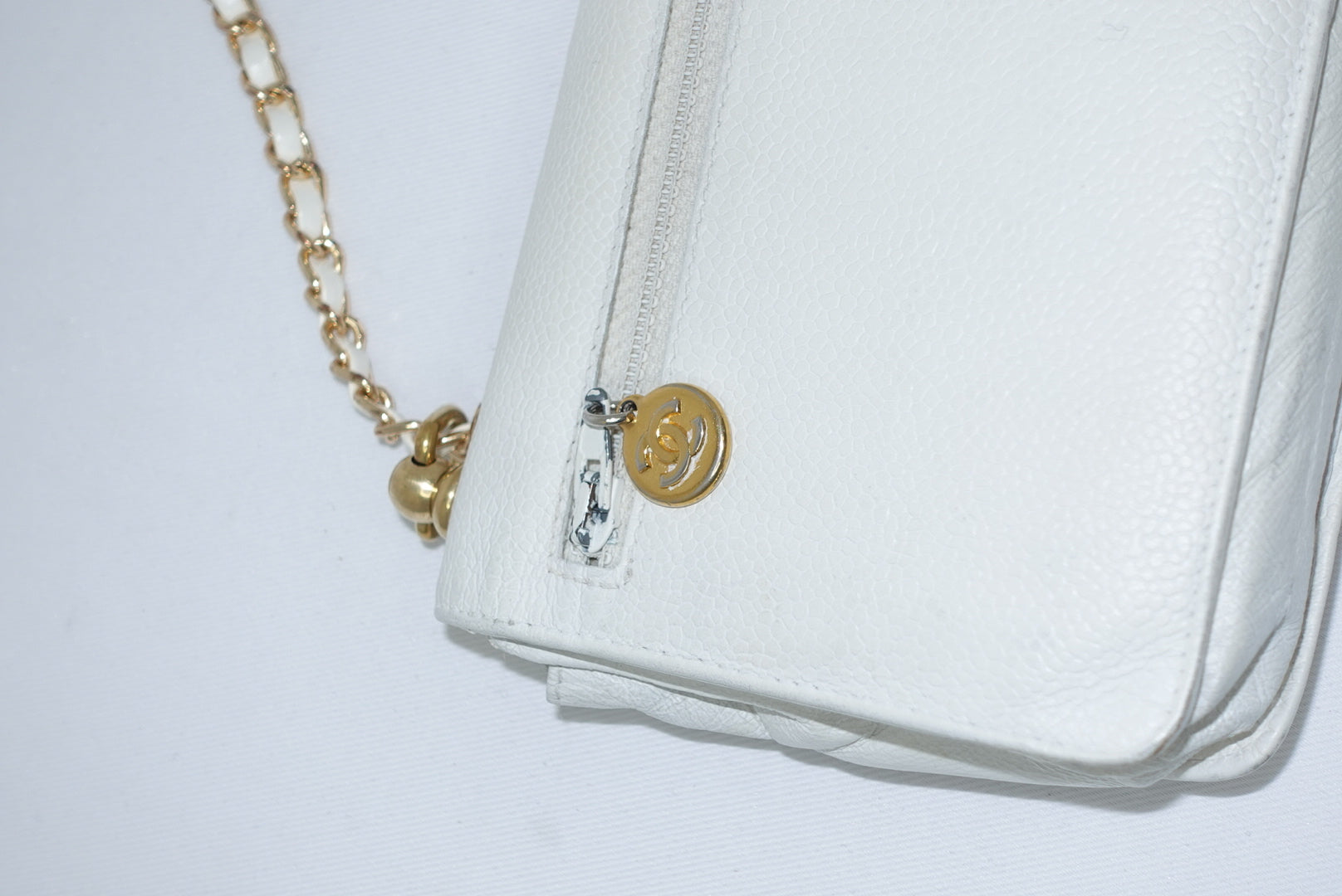 Re-Worked Chanel CC Flap Vintage White Calfskin Vintage Wallet with Chain