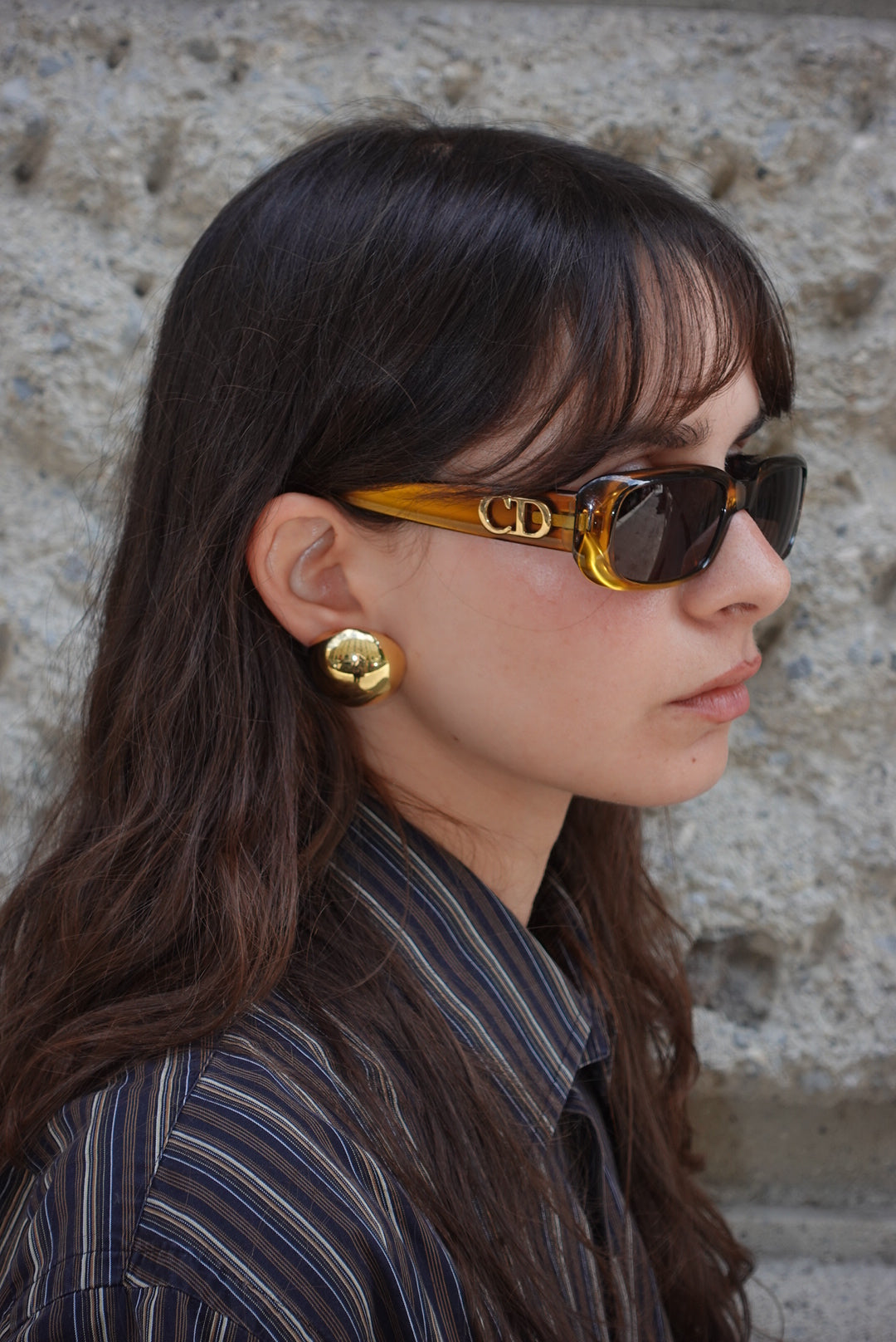 Stainless Steel Gold Toned Big Round Shaped Earrings